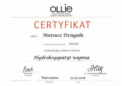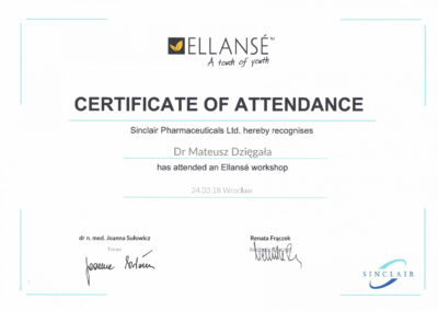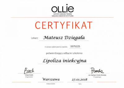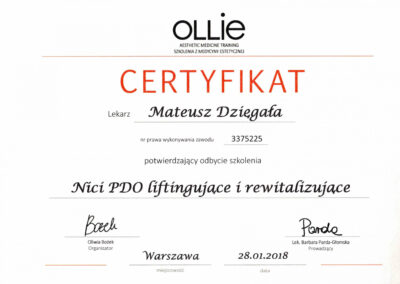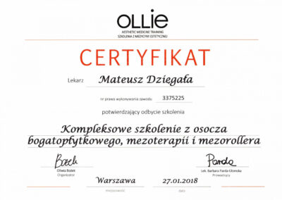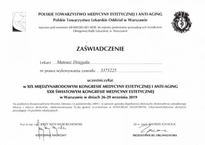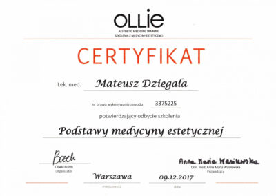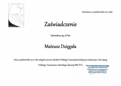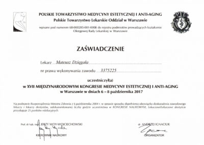 - dyplomowany lekarz medycyny estetycznej – Podyplomowa Szkoła Medycyny Estetycznej Polskiego Towarzystwa Lekarskiego